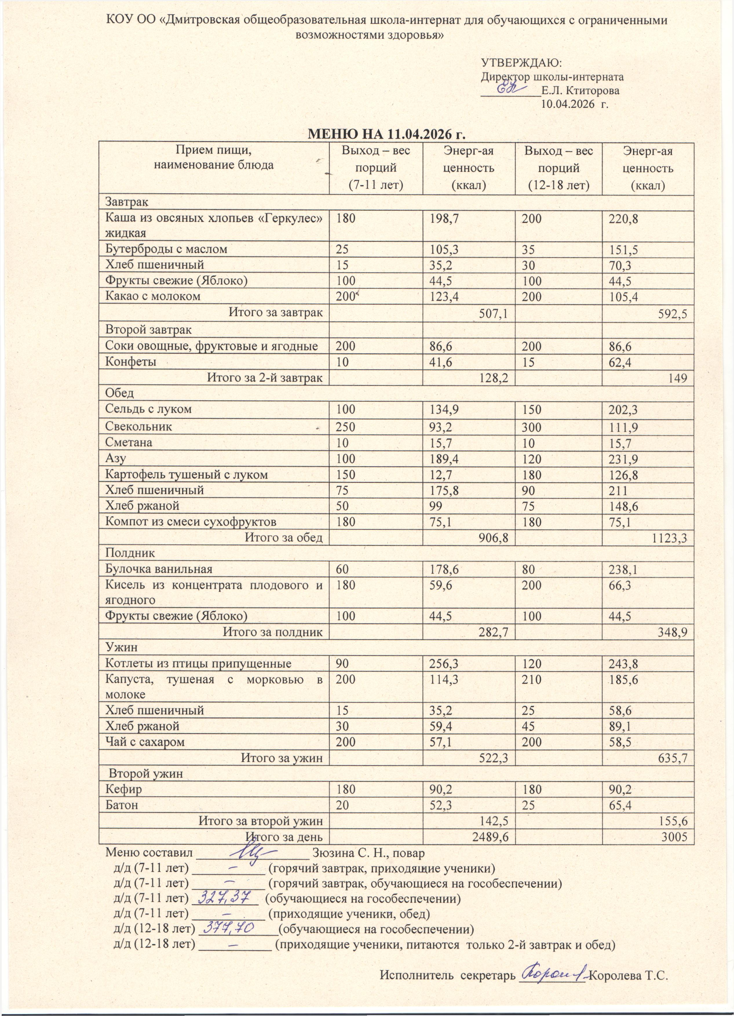 Ежедневное меню