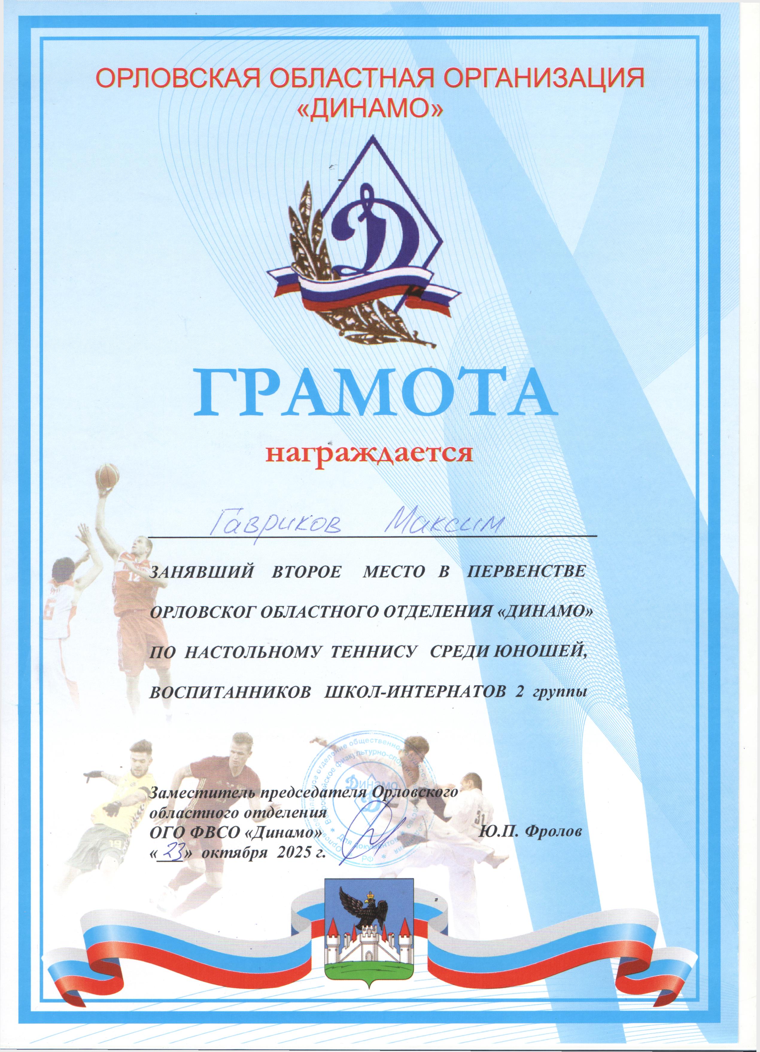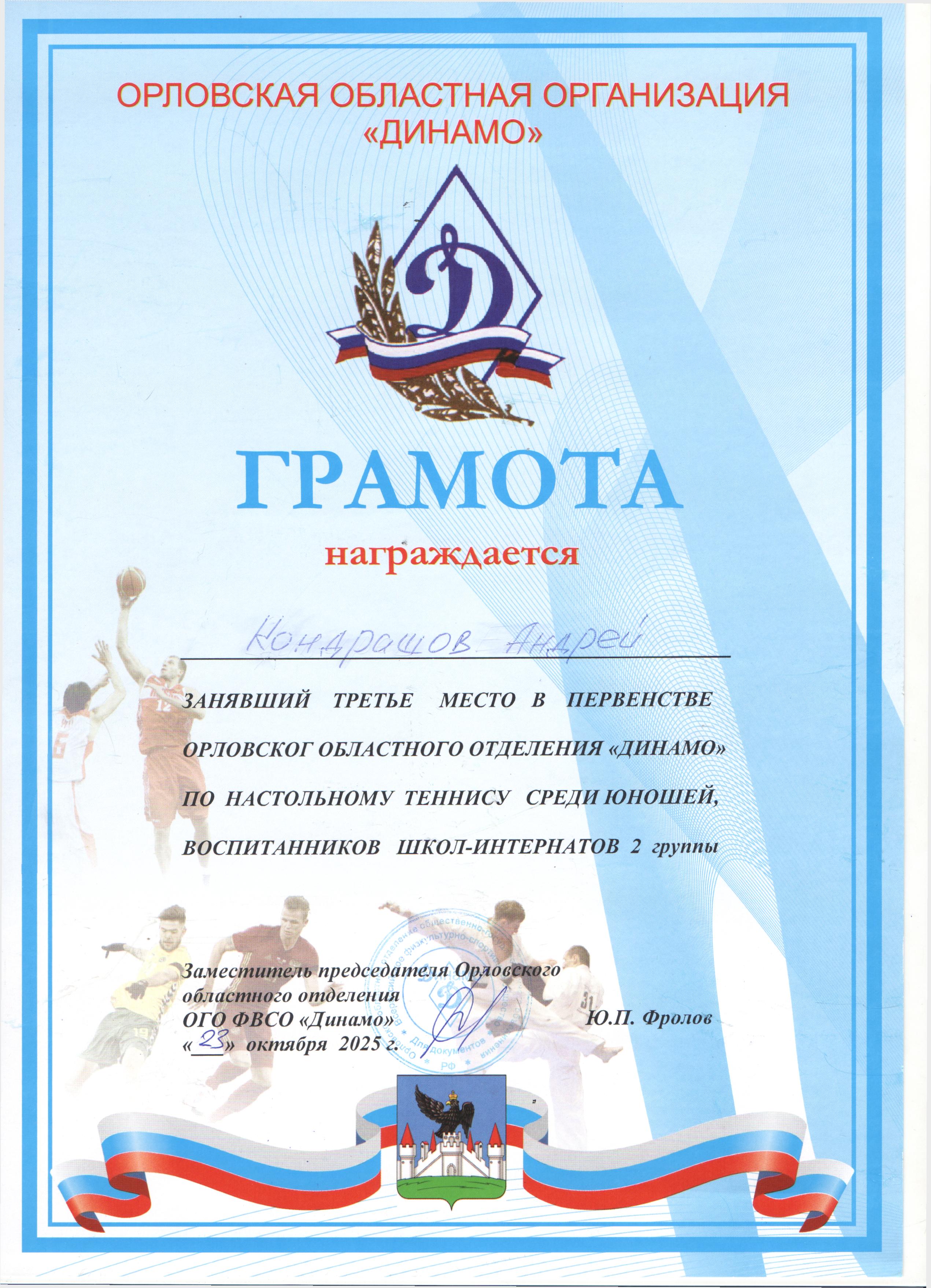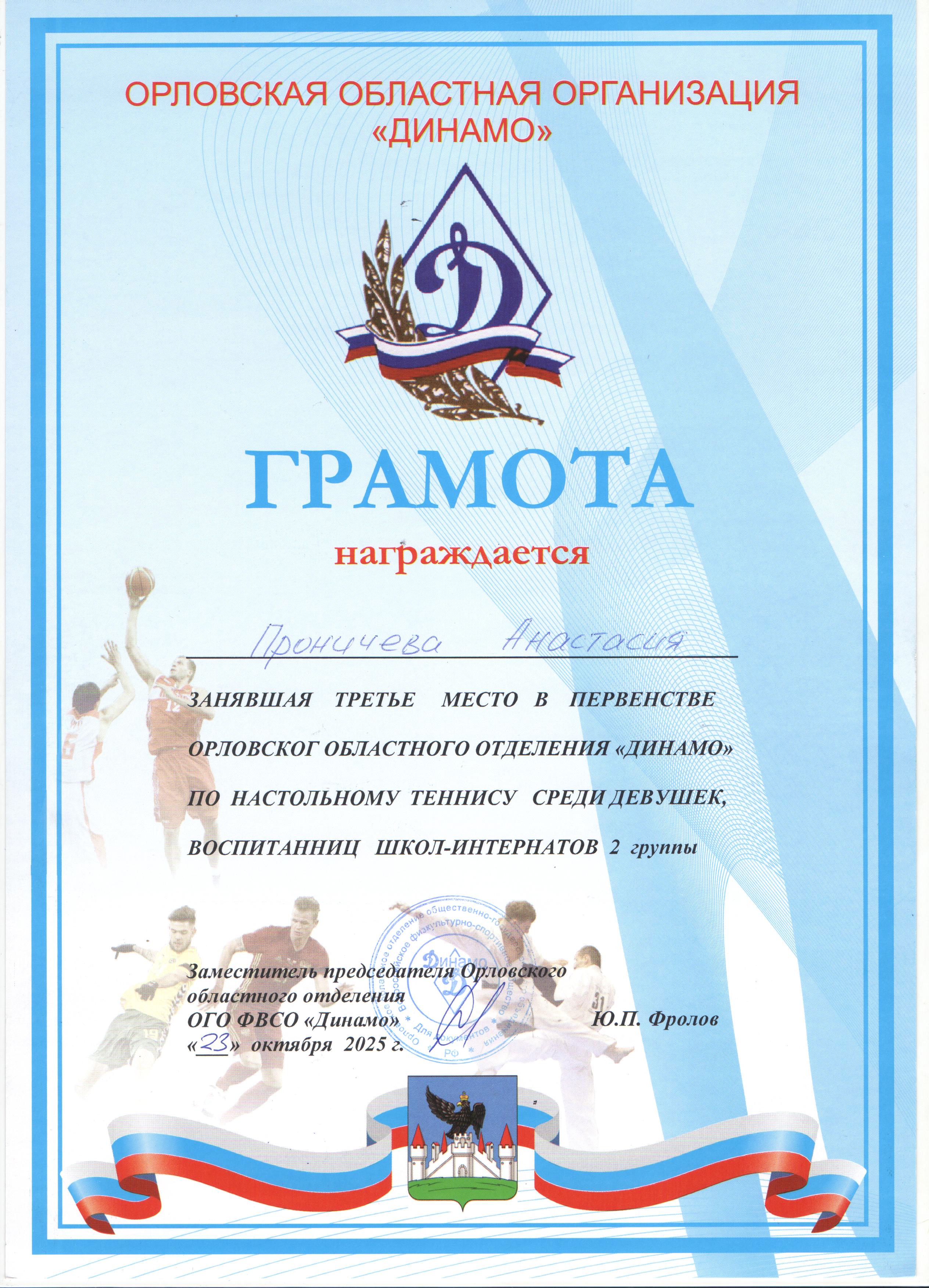 24 октября 2019 в г. Орле обучающиеся школы-интерната приняли участие в соревнованиях по настольному теннису в рамках Спартакиады Орловского областного отделения ОГО ВФСО "Динамо"
