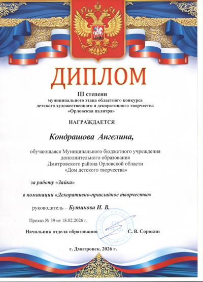 Муниципальный этап областного конкурса-выставки детского художественного и декоративного творчества "Орловская палитра"