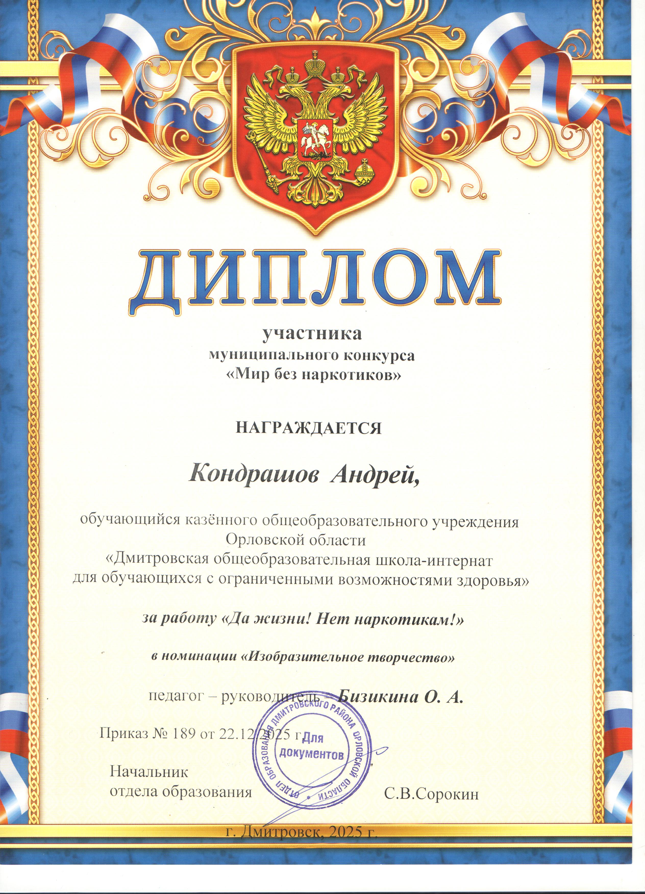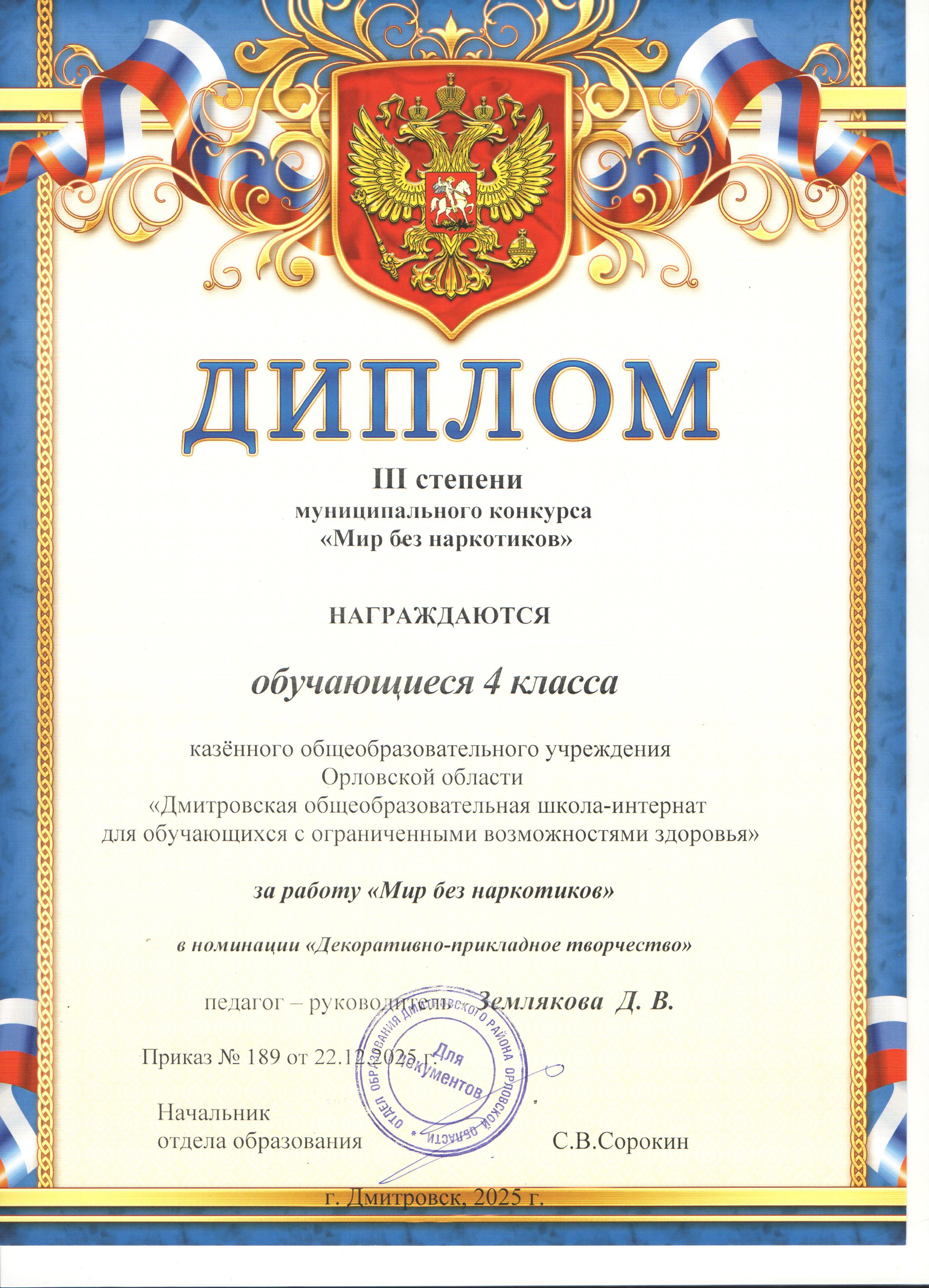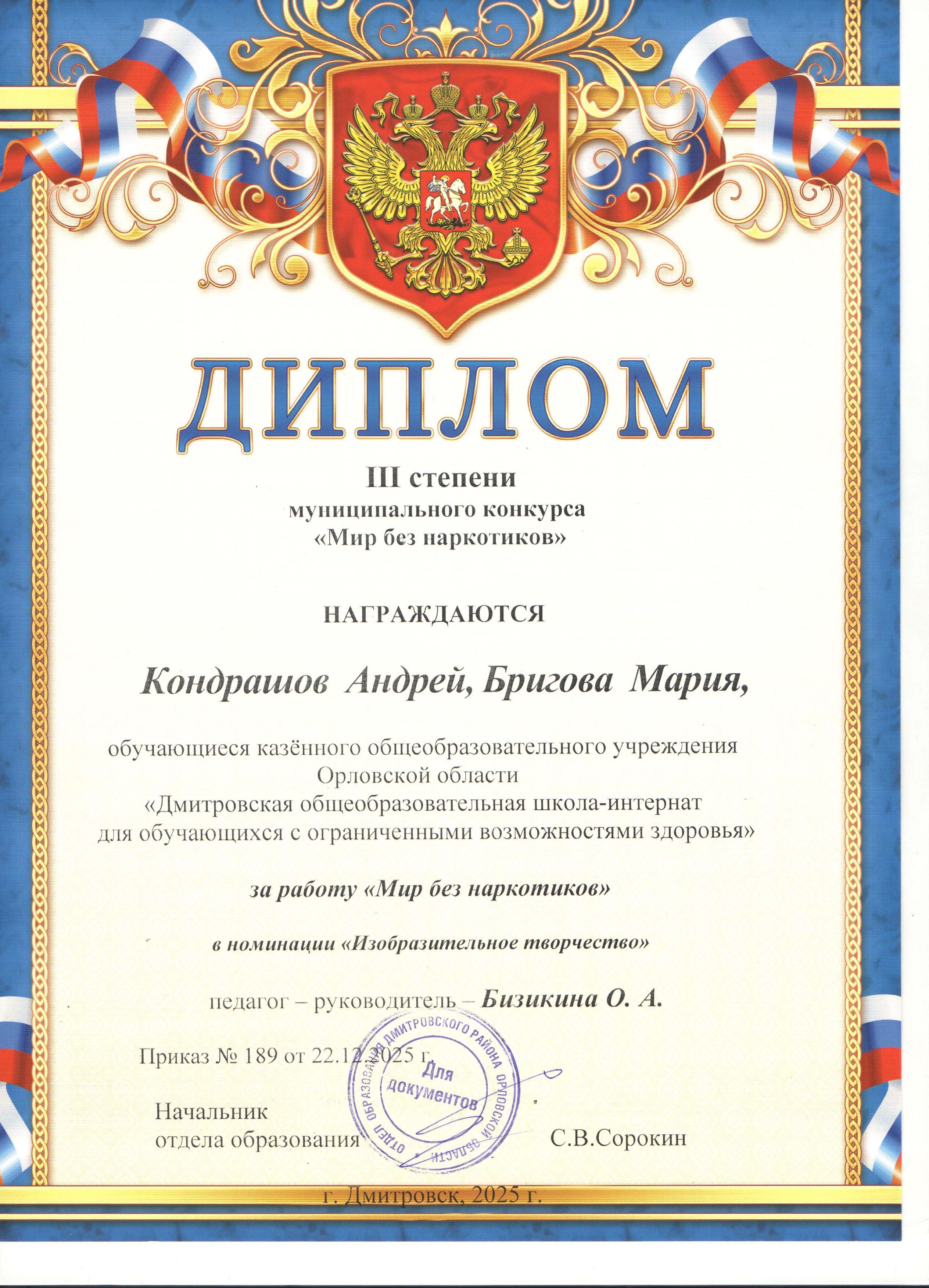 Обучающиеся школы-интерната приняли участие в районной акции-конкурсе "Мир без наркотиков", где заняли призовые места и были награждены грамотами