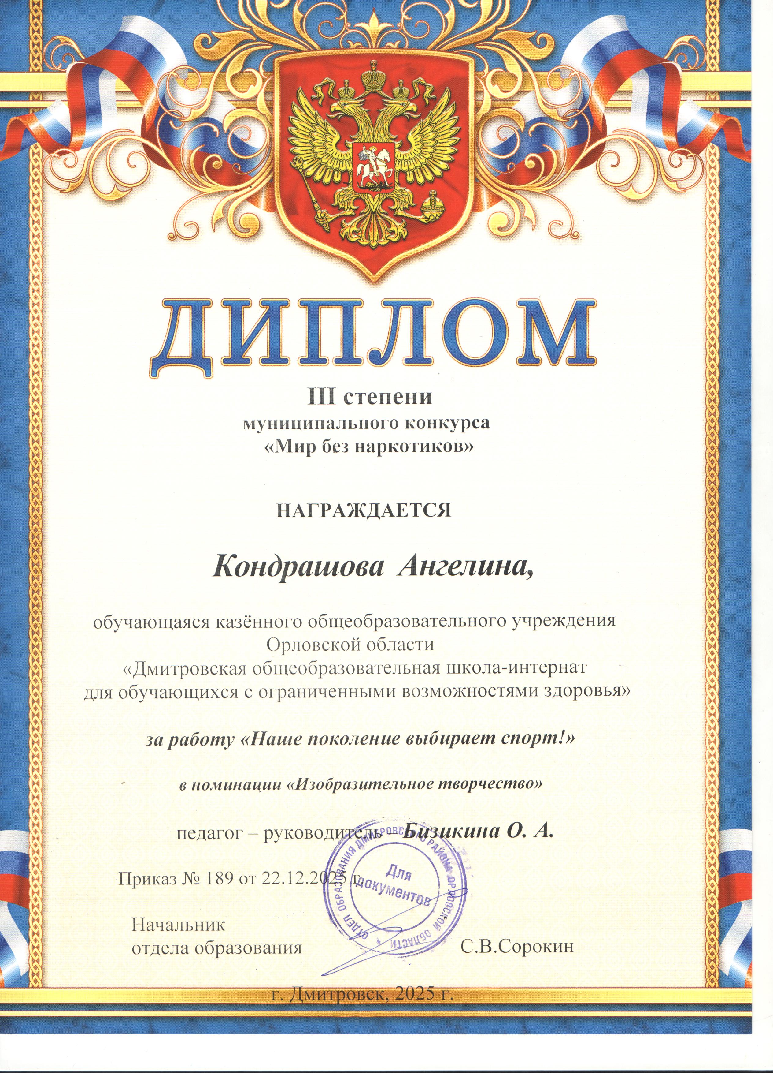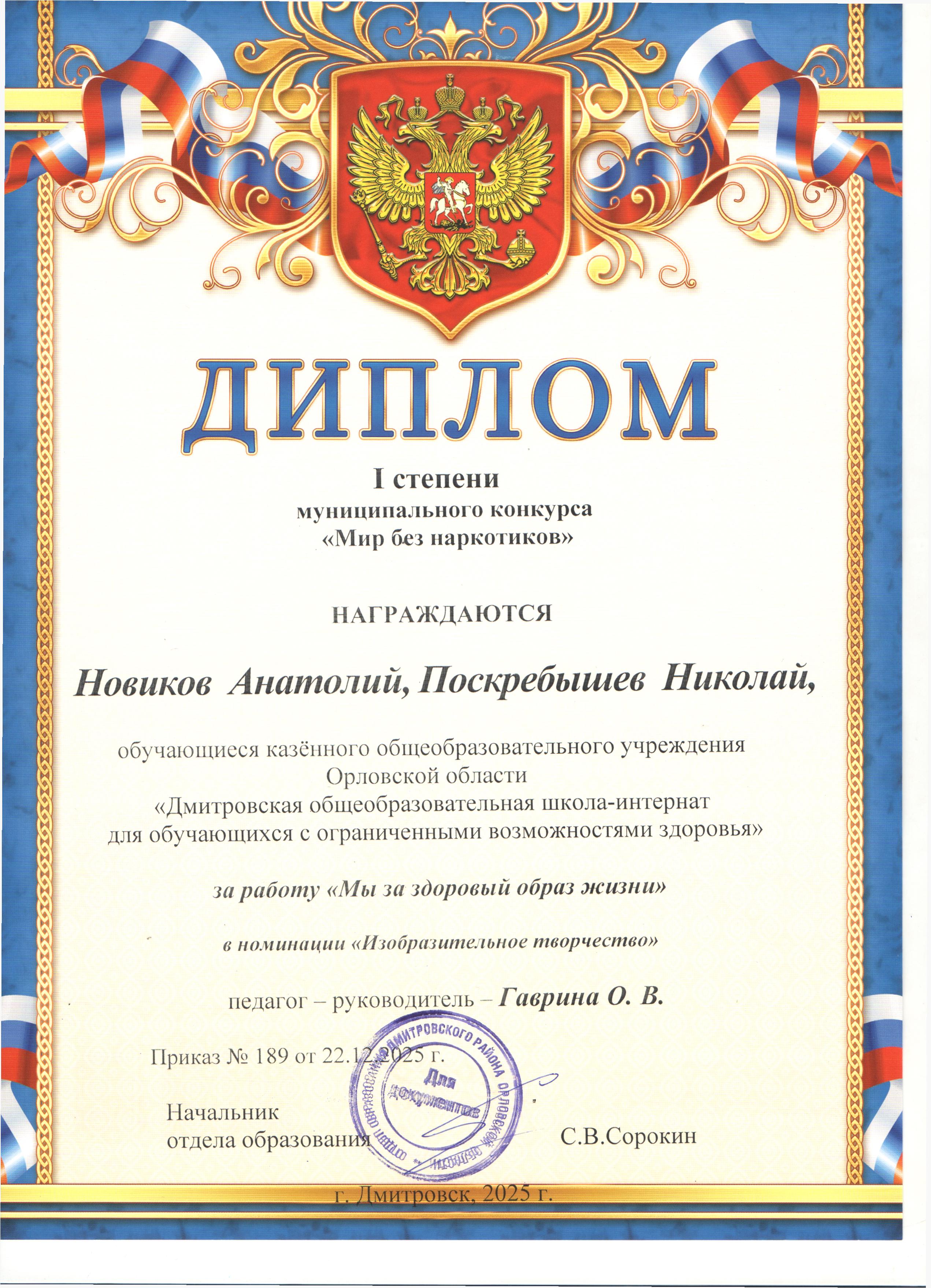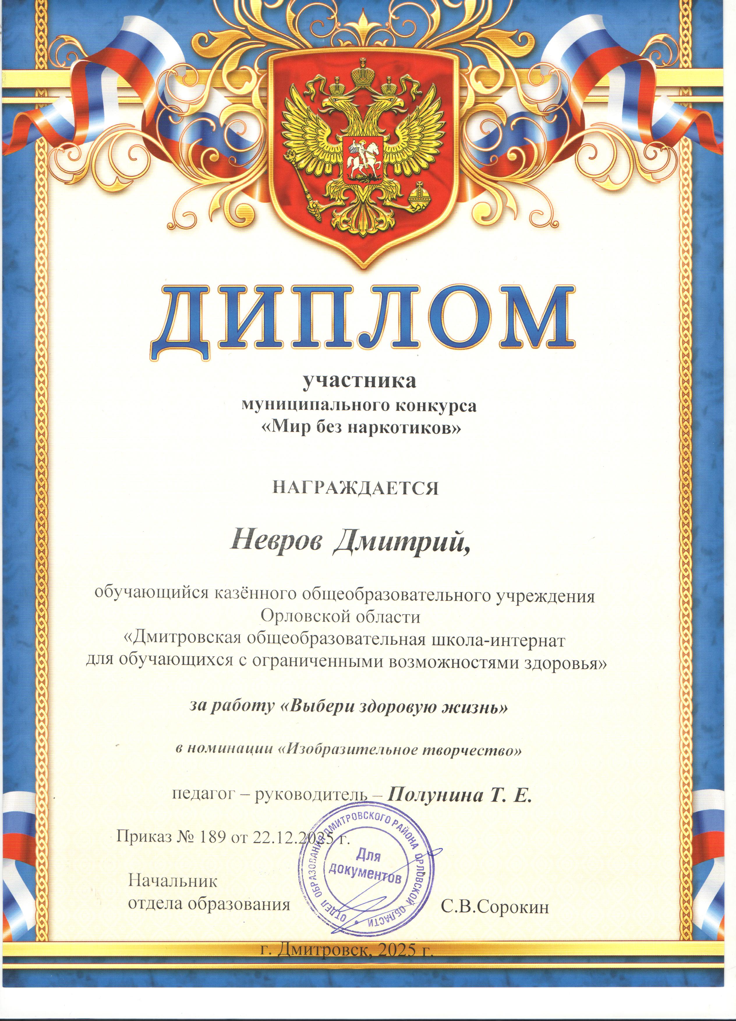 Обучающиеся школы-интерната приняли участие в районной акции-конкурсе "Мир без наркотиков", где заняли призовые места и были награждены грамотами
