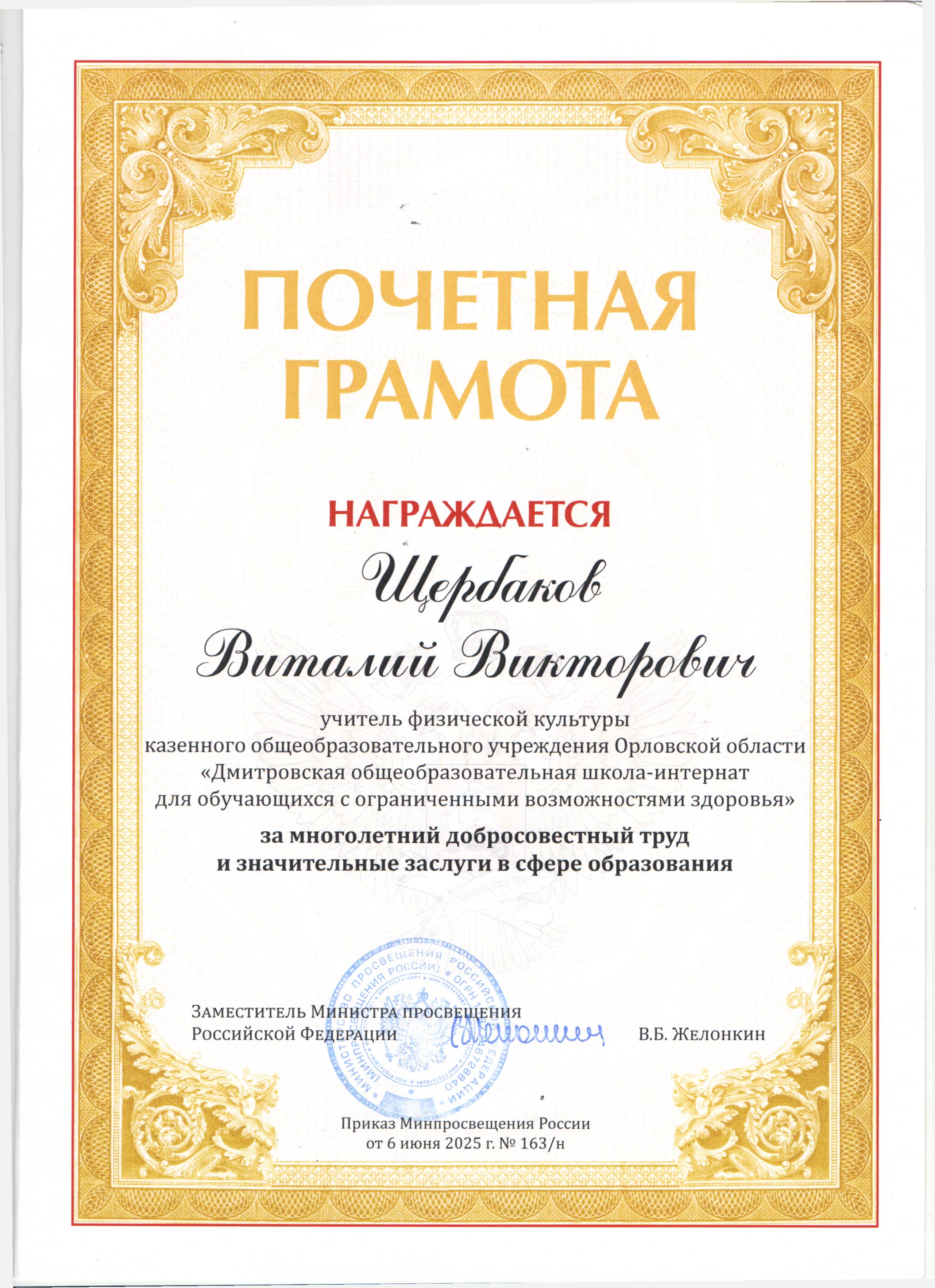 На торжественной линейке в школе-интернате педагогам были вручены грамоты Департамента образования Орловской области.