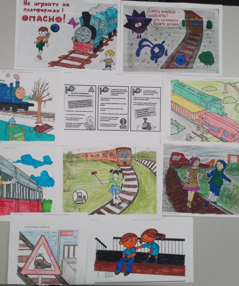 На занятиях ребята под руководством воспитателей Гавриной Оксаны Викторовны и Климовой Татьяны Викторовны, познакомились с основными причинами травматизма на железной дороге, узнали, что такое "железнодорожный переезд", "шлагбаум" и "локомотив". Воспитанники повторили правила поведения на железной дороге и закрепили полученные знания красочными рисунками.
