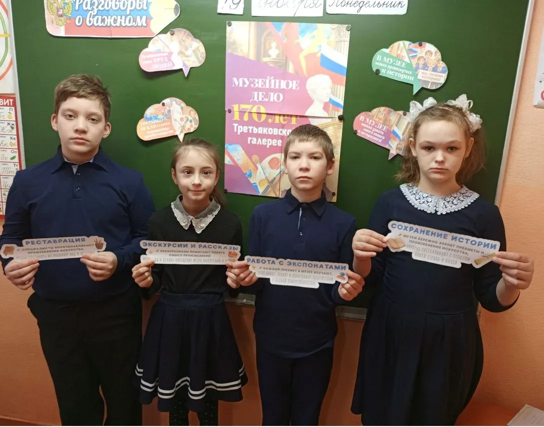 , в рамках программы внеурочной деятельности «Разговоры о важном», в Дмитровской школе-интернате, в 1-9 классах, прошло занятие на тему «Музейное дело. 170 лет Государственной Третьяковской галерее»