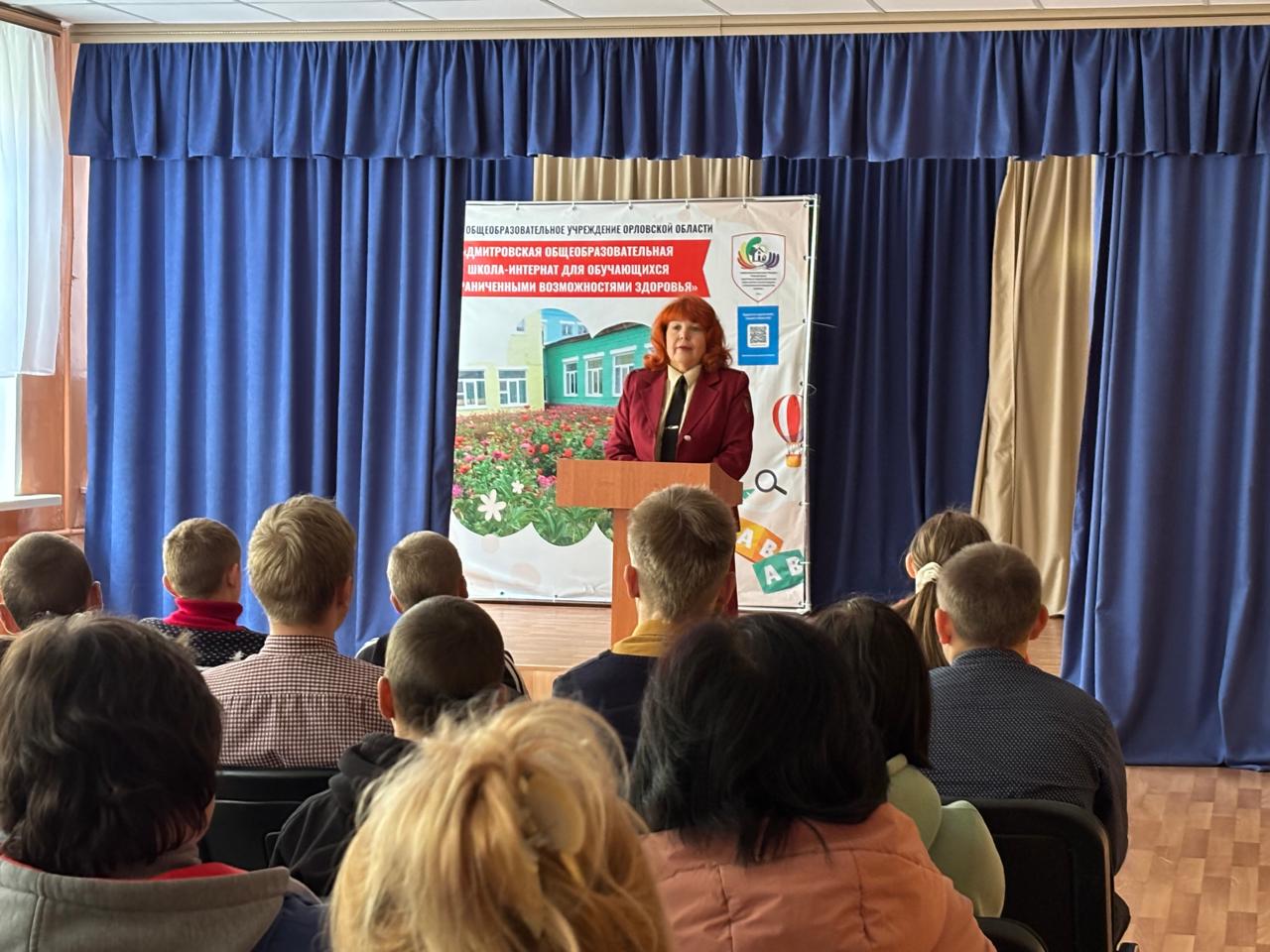 26 сентября 2025 года заместитель начальника территориального отдела Управления Роспотребнадзора по Орловской области в п. Кромы Нещадова Ирина Игоревна провела обучение для обучающихся и персонала школы-интерната мерам профилактики гриппа, острых респираторных инфекций, новой коронавирусной инфекции (COVID-19).