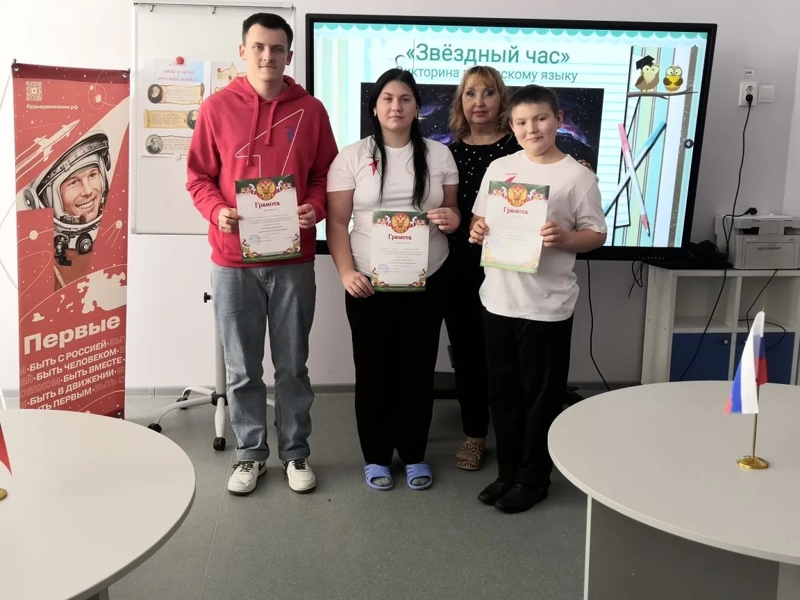 13 марта в рамках Недели русского языка, учитель Тонкель Марина Викторовна провела викторину с участниками Движения первых «Звёздный час».