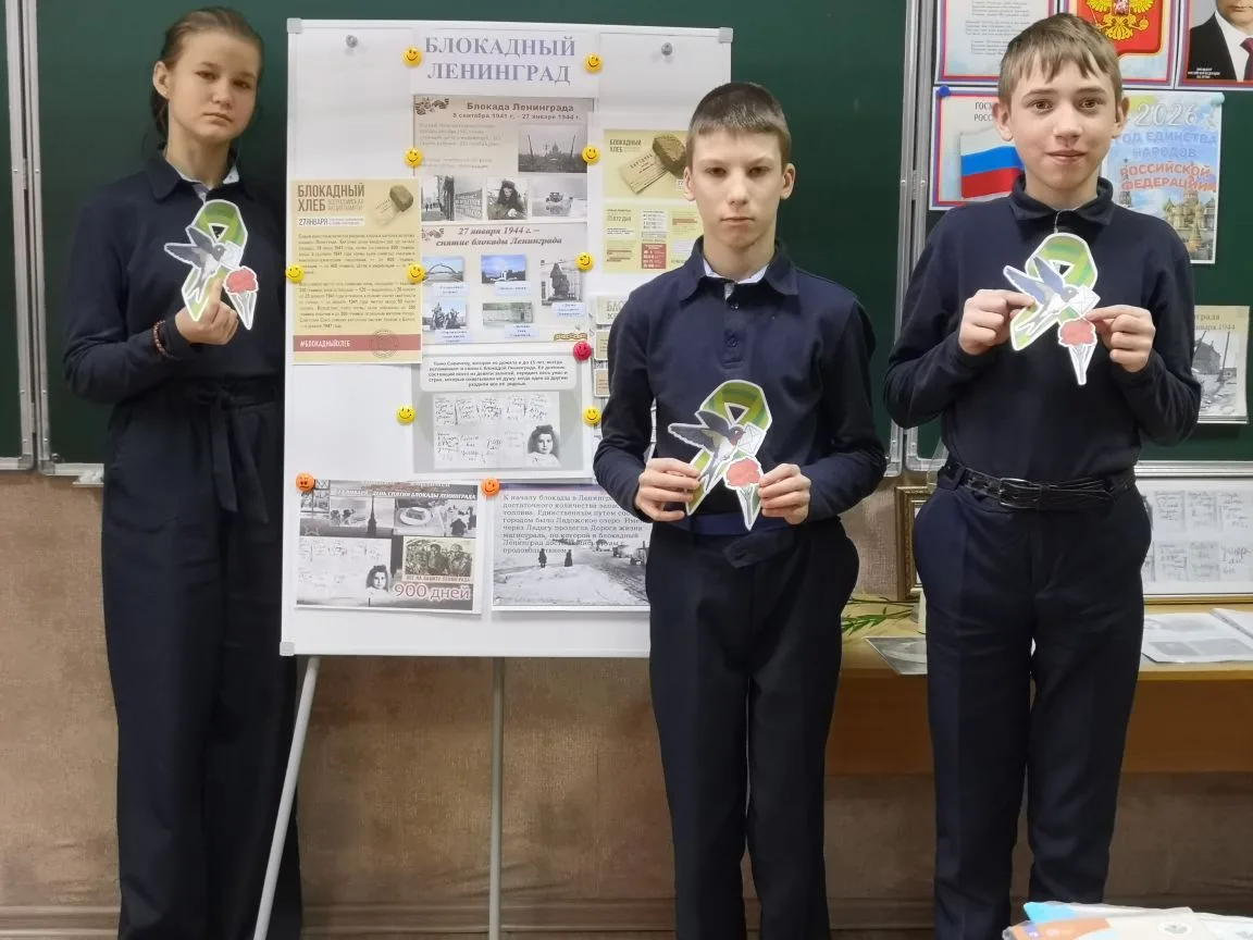 Старшеклассникам были представлены документальные кадры 🎥, отражающие снятие блокады. Ребята подготовили выступления о блокадном хлебе 🍞 и дневнике Тани Савичевой 📖. Мероприятие завершилось участием в акции "Блокадная ласточка" 🕊️, символизирующей надежду на лучшее и добрую весть о родных. Все присутствующие почтили память погибших в годы блокады 🙏.