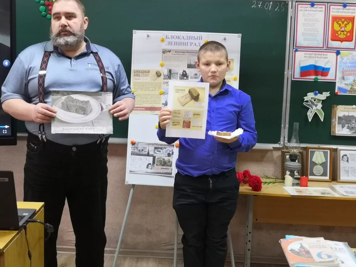27 января 🗓 учитель Хомяков Георгий Вячеславович провёл Час Мужества "История блокадного Ленинграда" 🚩🏛️ с обучающимися 9-го и 6-го классов.