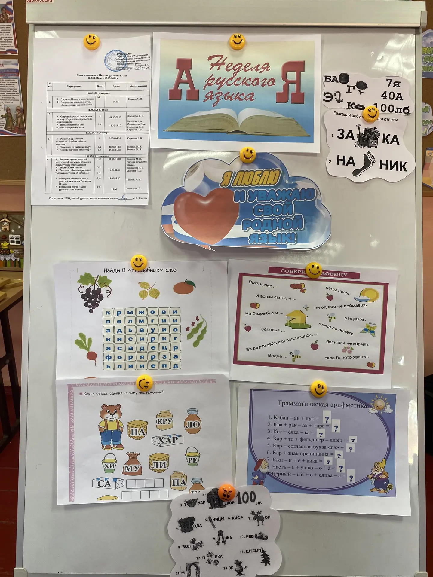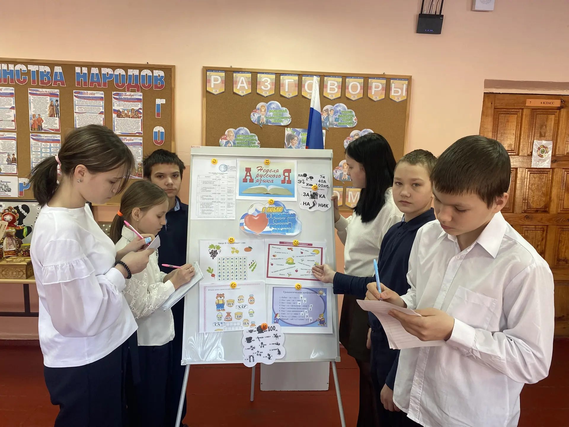 11-го марта в школе продолжилась Неделя русского языка! С воодушевлением и азартом ребята разгадывали кроссворды, шарады, выполняли различные грамматические задания, представленные на «Говорящей стене».