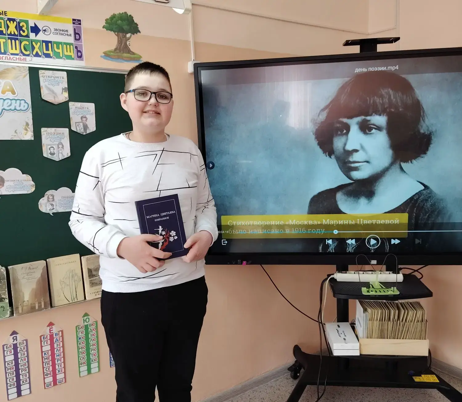 В начале занятия ребята узнали о важности поэзии в формировании культуры речи и эстетического воспитания 📖🎨. Пространство класса украсили книги знаменитых поэтов и цитаты из классических произведений, создав особую атмосферу вдохновения и творческого подъёма ✨🌟.