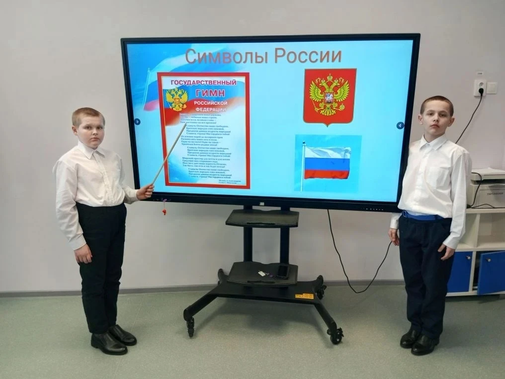 В начале занятия школьники повторили знания о главных символах нашей страны: