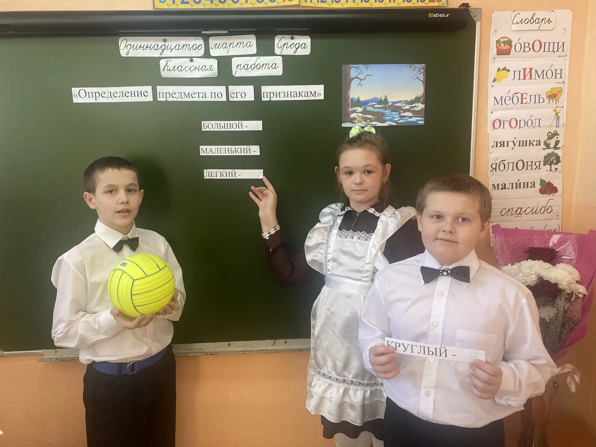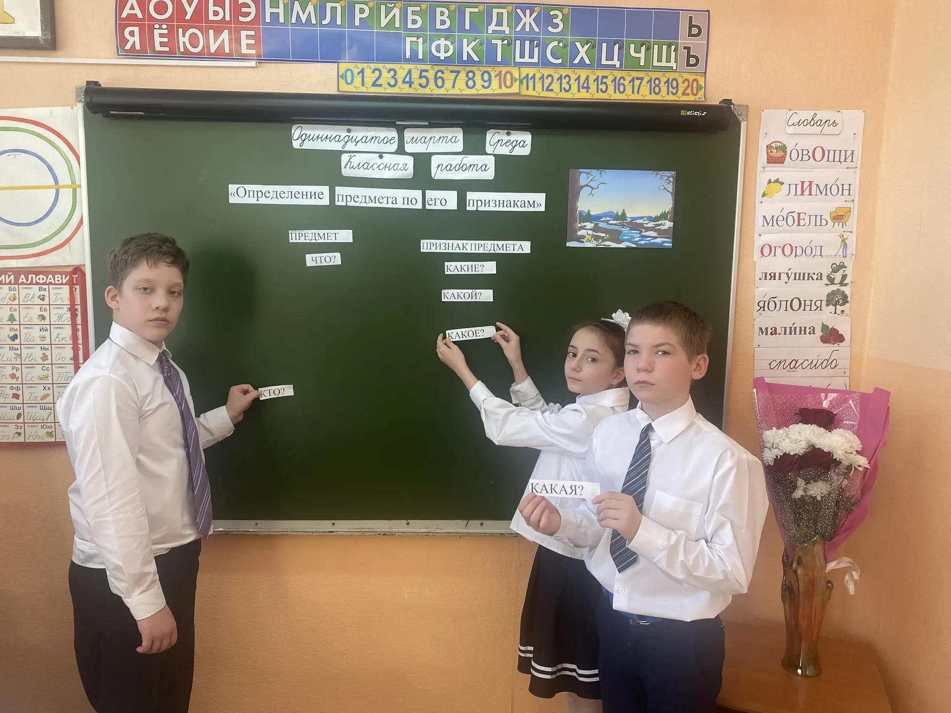 11 марта, в рамках Недели русского языка, учитель начальных классов Землякова Дина Викторовна провела открытый урок русского языка в 4 классе на тему: «Определение предмета по его признакам». В ходе урока дети выполняли разнообразные задания - логические, конструктивные, коррекционно - развивающие, творческие. Дети научились определять предмет по его признакам и самостоятельно подбирать подходящие признаки к данным учителем предметам. Урок достиг поставленных целей. Хочется поблагодарить Дину Викторовну за прекрасную организацию урока и пожелать дальнейших творческих успехов в профессиональной деятельности!