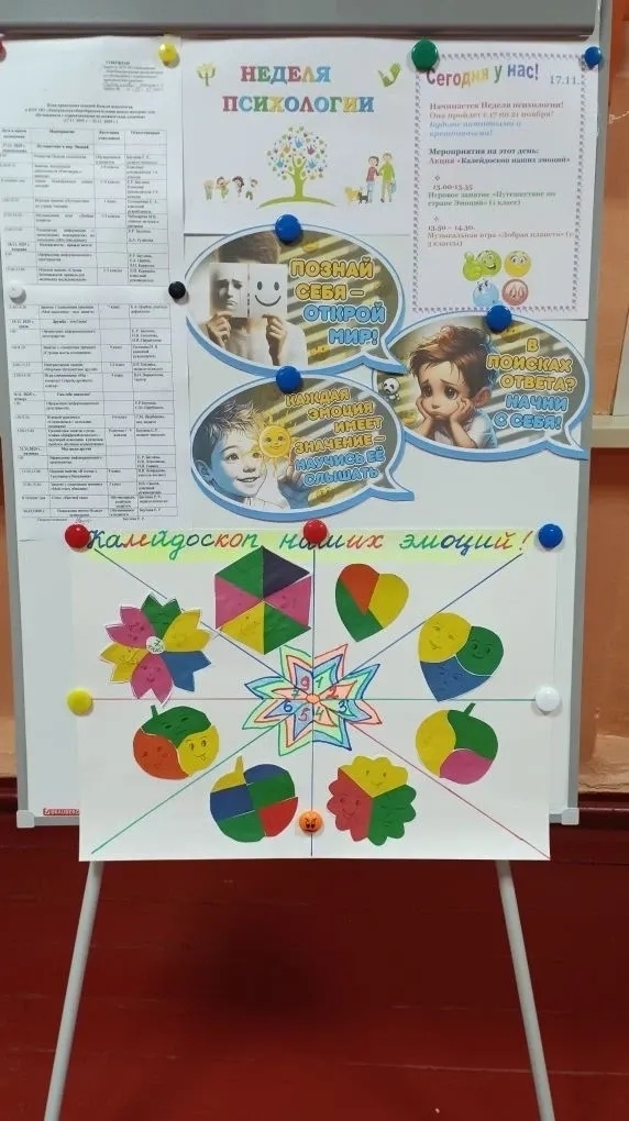 17 ноября 2025 года, на общешкольной линейке, педагог-психолог Баулина Елена Романовна объявила о проведении в школе осенней Недели психологии и познакомила с планом мероприятий. В вестибюле 1 этажа был оформлен информационный стенд. Открыла Неделю психологии учитель музыки