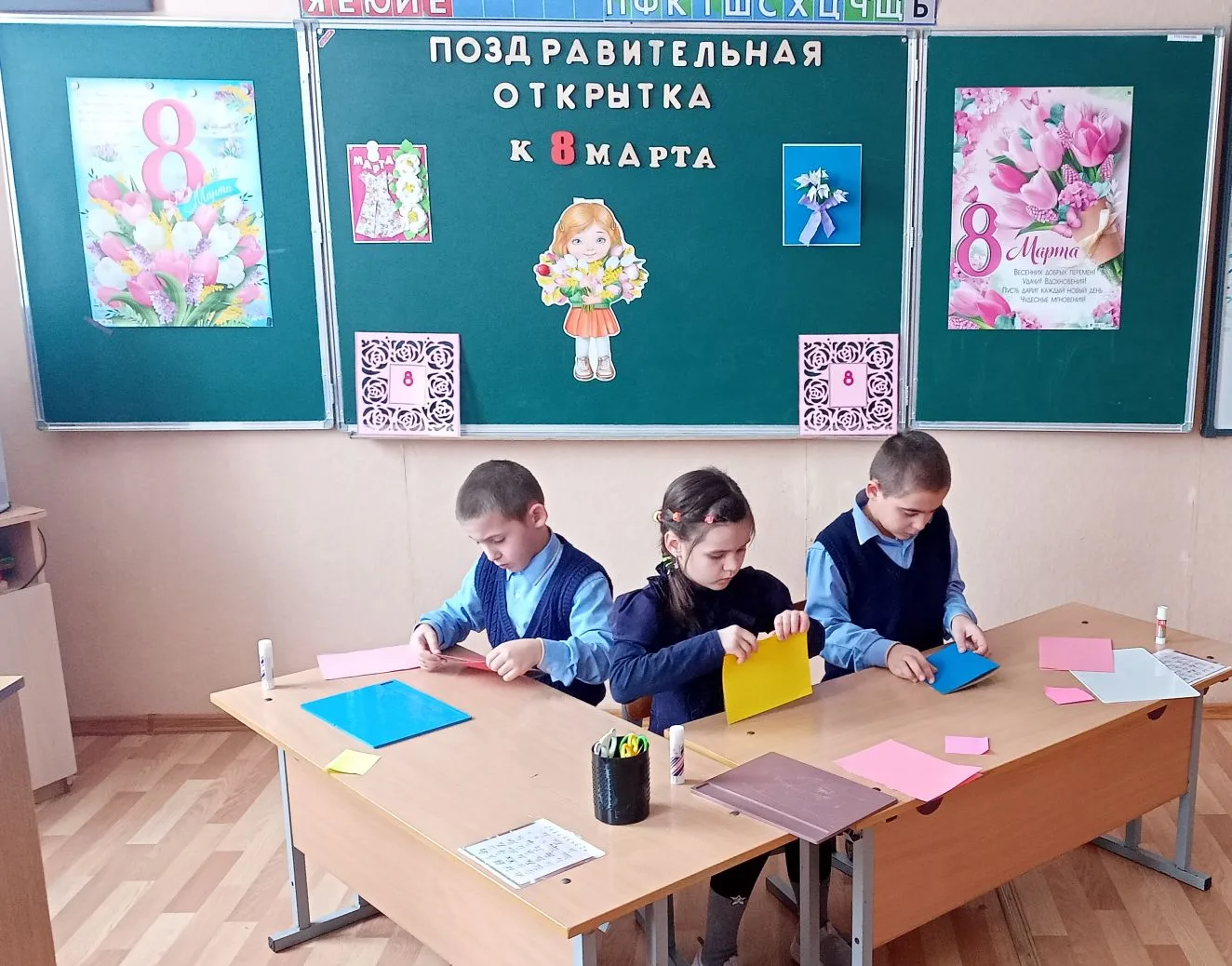 В рамках Недели профильного труда и основ социальной жизни, 16 февраля 2026 года, на занятии внеурочной деятельности "Оригами" 🎈 первоклашки вместе с учителем Соломатиной Еленой Алексеевной изготовили поздравительные открытки к 8 марта 🌷.