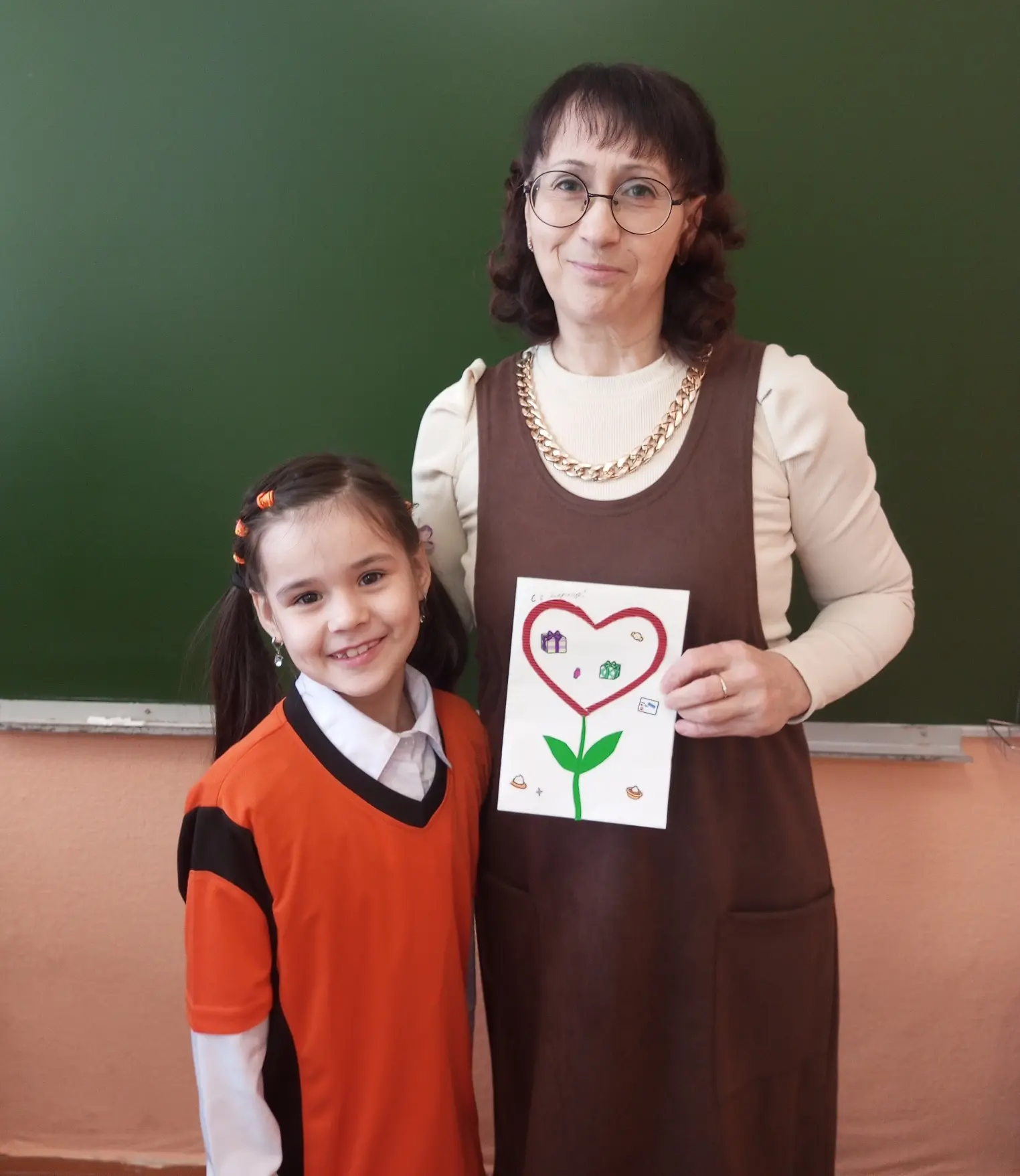 В праздничной открытке нашли отражение искренние чувства и добрые пожелания детей.