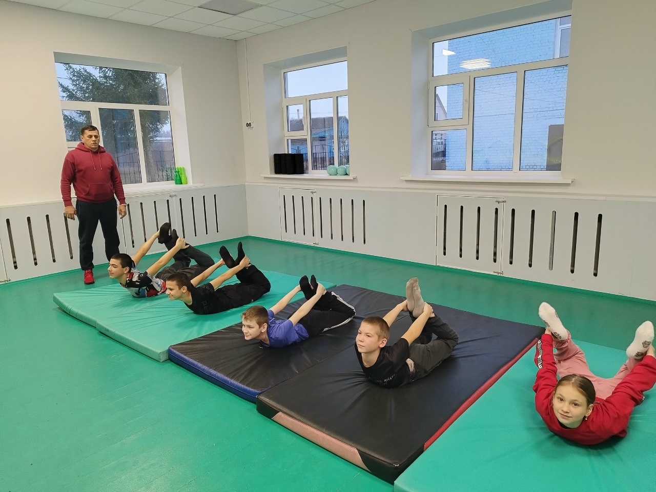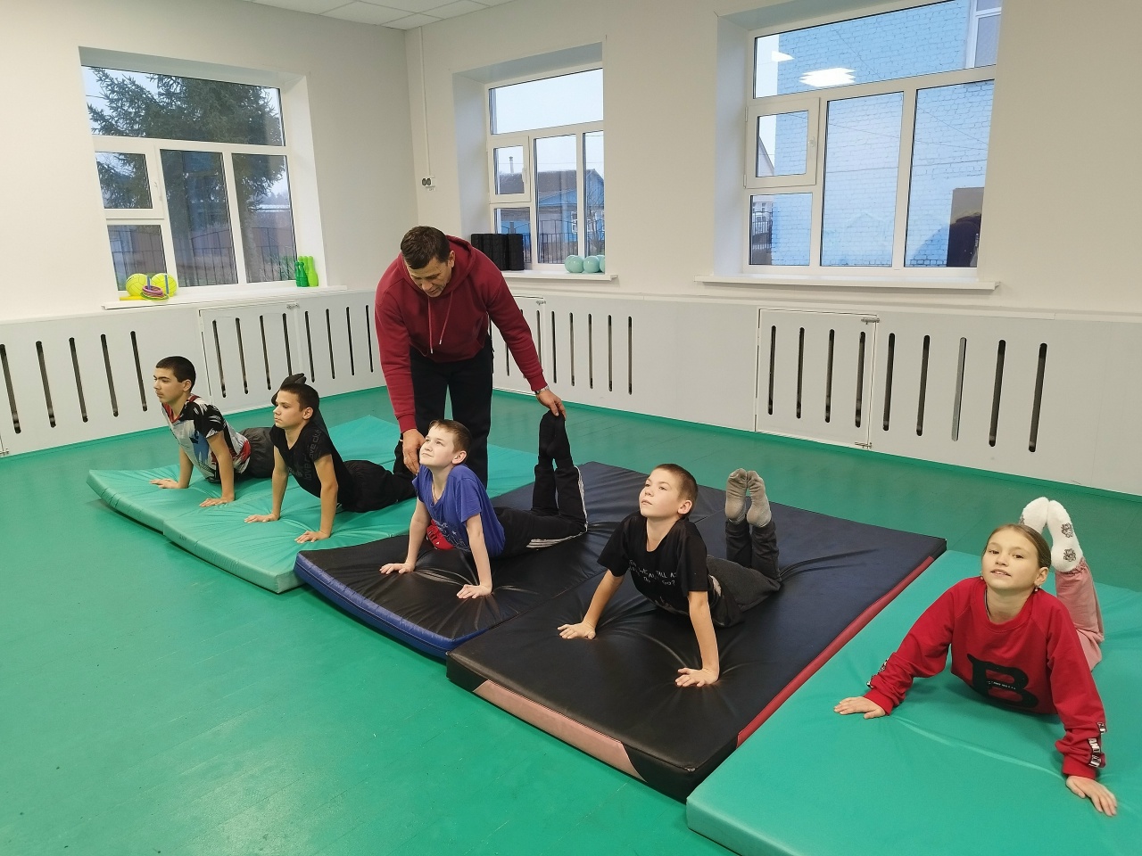 Ребята выполняли упражнения на развитие гибкости, что не только полезно для здоровья, но и помогает развивать уверенность в своих силах.
