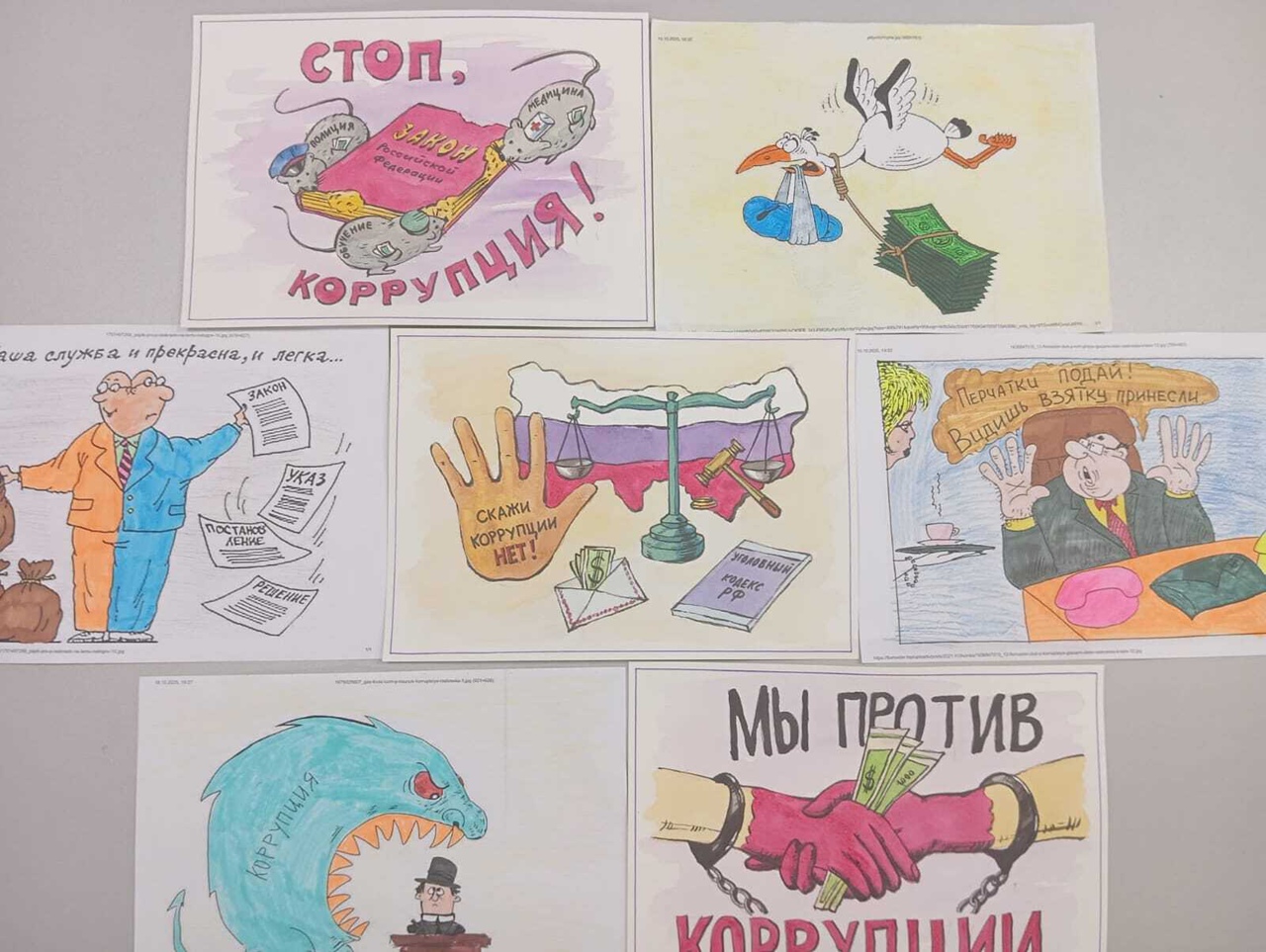 В конце занятия ребята попытались передать свое видение коррупции через рисунки.