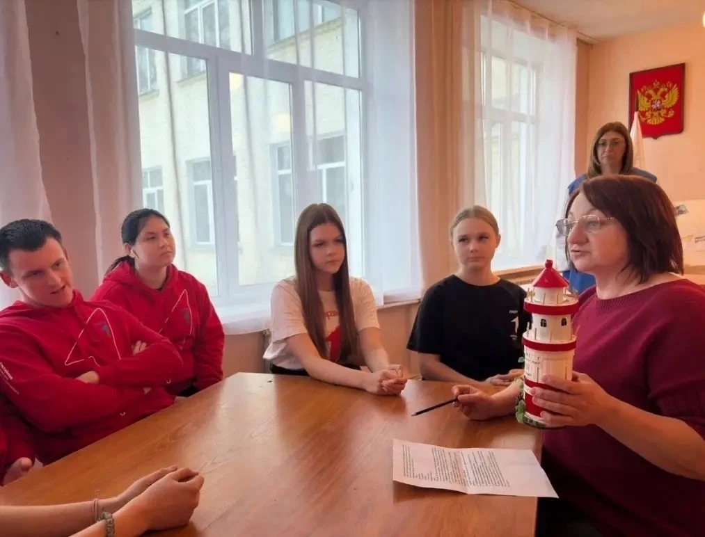 Проект также стал поводом для встречи с участниками первичного отделения МБОУ «СОШ № 1», где обучающиеся школы-интерната рассказали об истории создания маяка и его символическом значении.