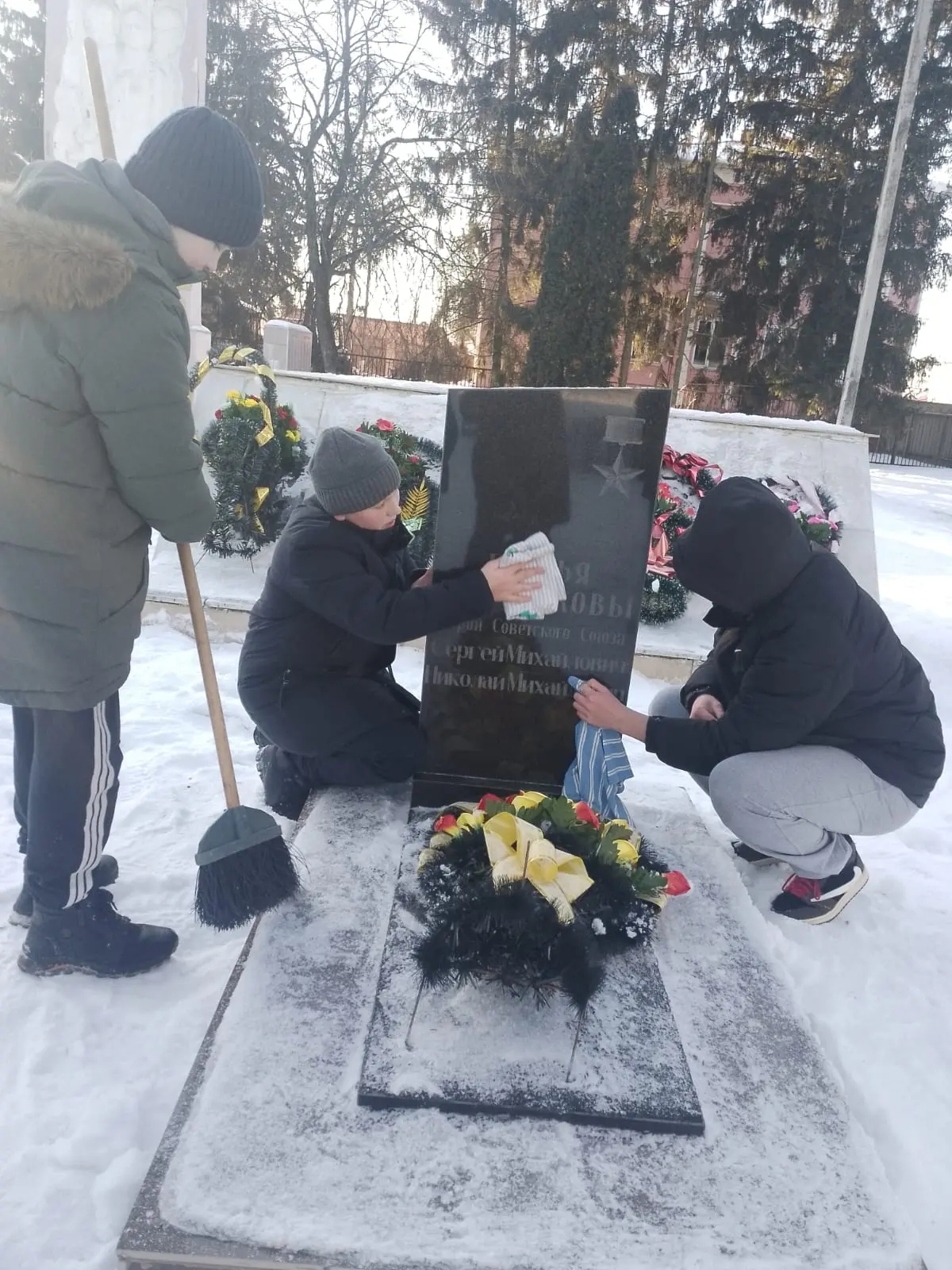 После экскурсии активисты привели в порядок территорию мемориального комплекса: очистили от снега дорожки и памятники, возложили цветы. Мемориал вновь приобрёл ухоженный и достойный вид.