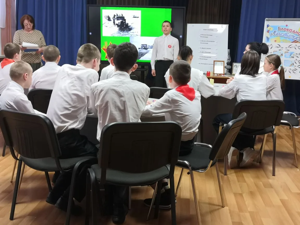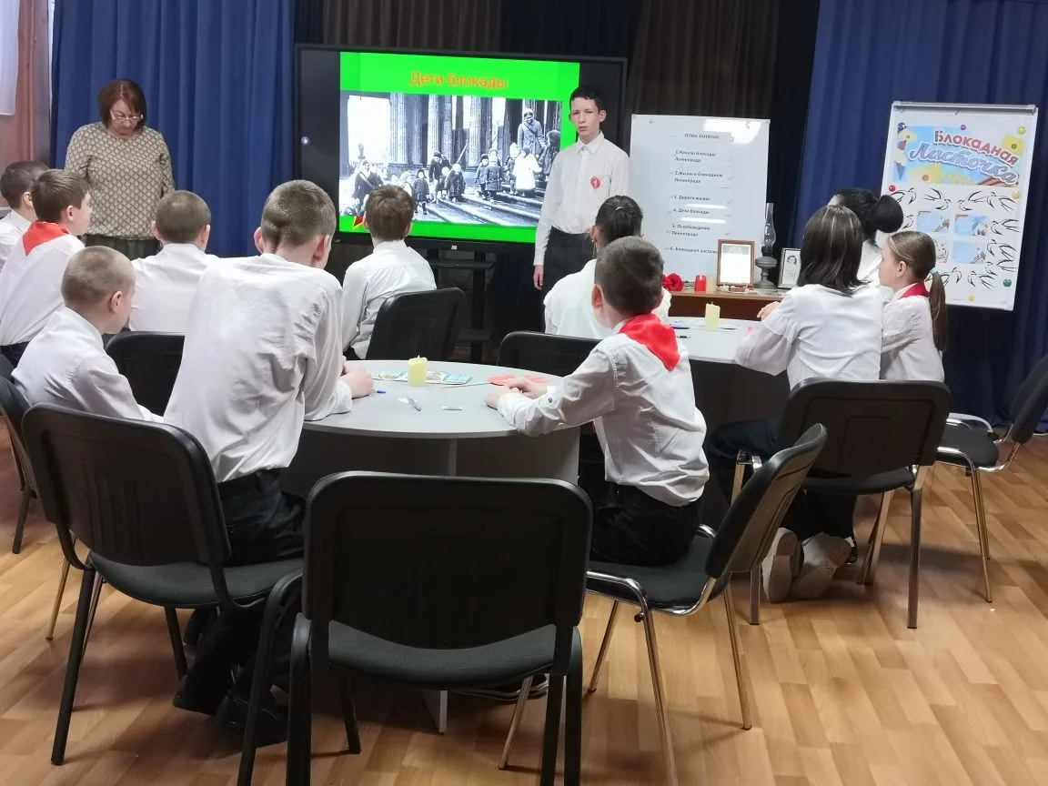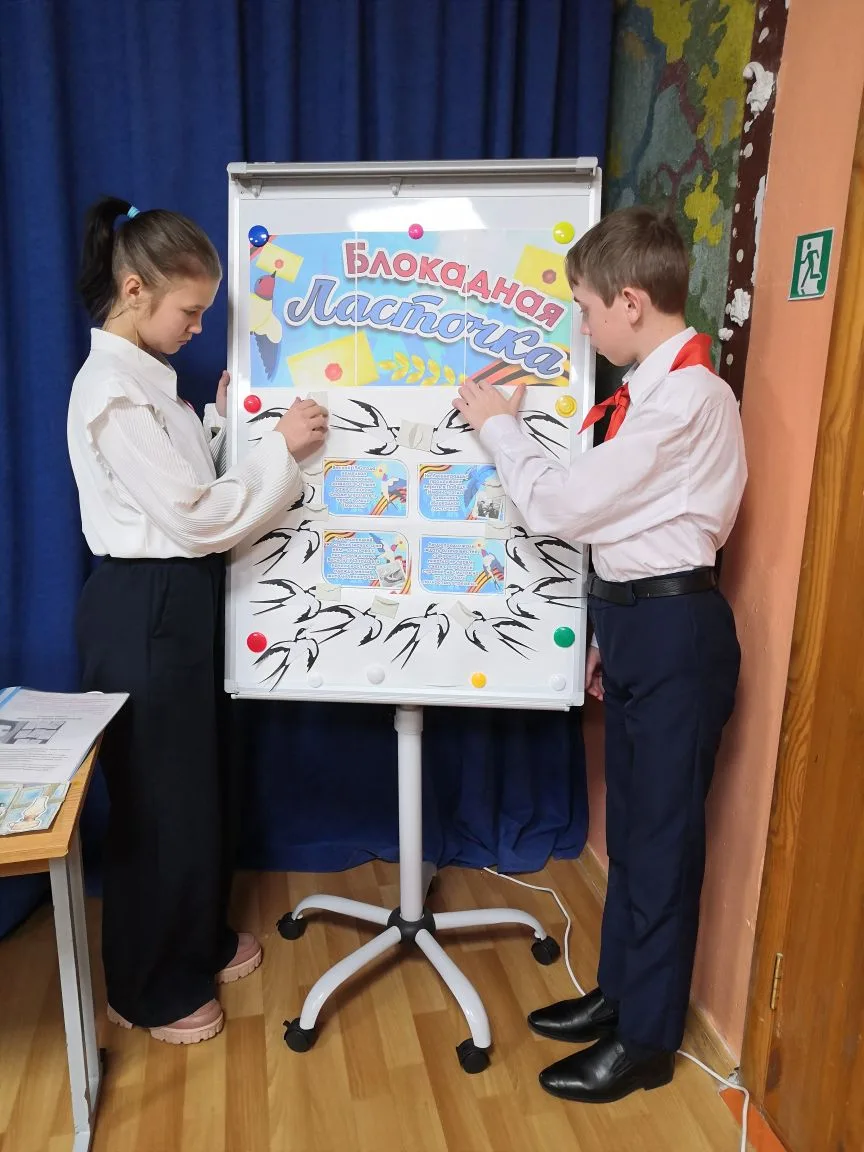 На занятии ребята делились реальными историями о героизме юных ленинградцев, узнали о символе блокады — «блокадной ласточке», ставшей знаком надежды и веры в будущее.