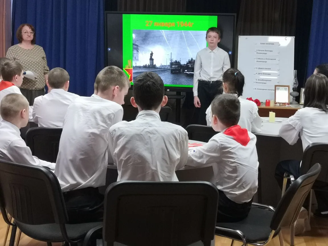 В рамках акции «Свеча памяти у Невы» для воспитанников 5–9 классов было проведено открытое занятие, посвящённое одной из самых трагических и героических страниц истории нашей страны.