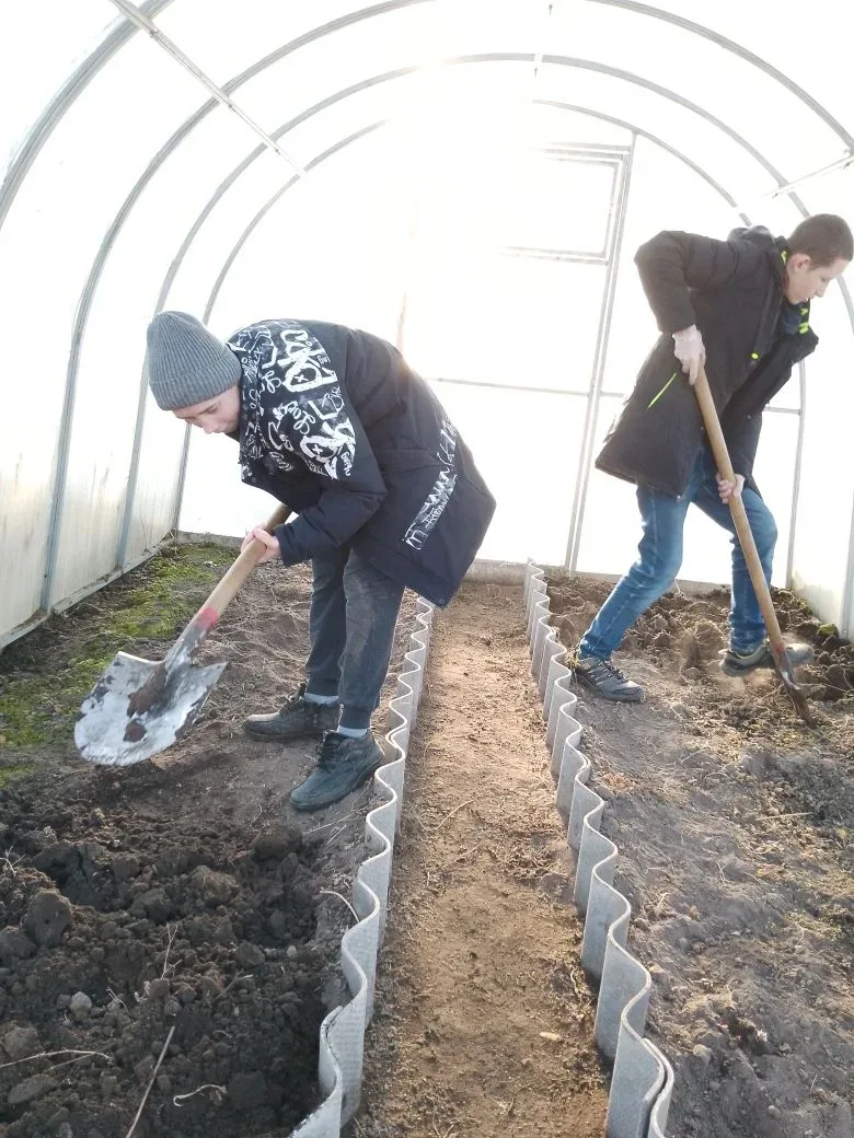 Одной из ключевых задач, стоявших перед ребятами, стало вскапывание земли в теплице.