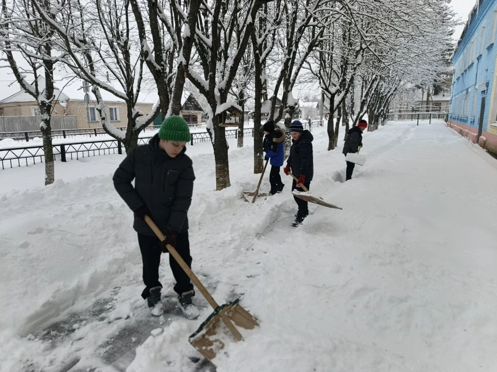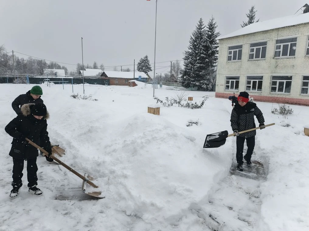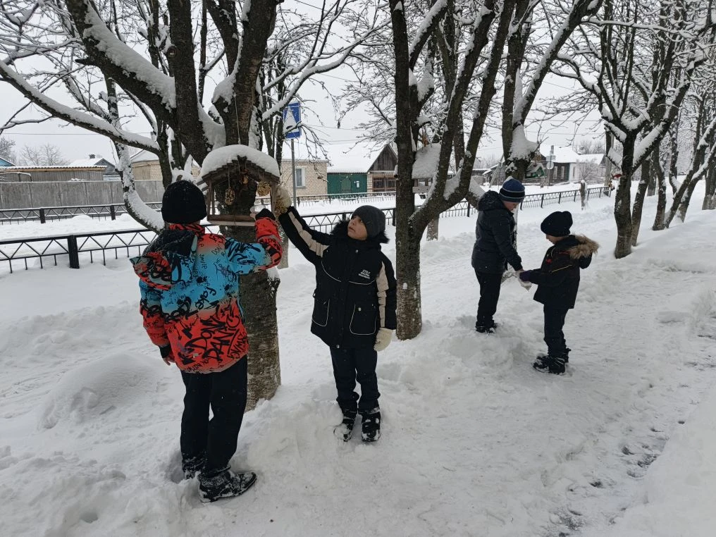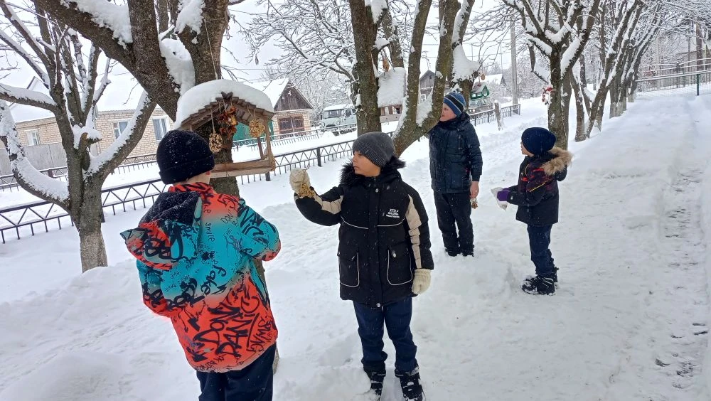 Ребята активно включились в реализацию трека «Орлёнок-Доброволец»: дружно расчистили территорию от снега и позаботились о птицах, оставив для них корм.