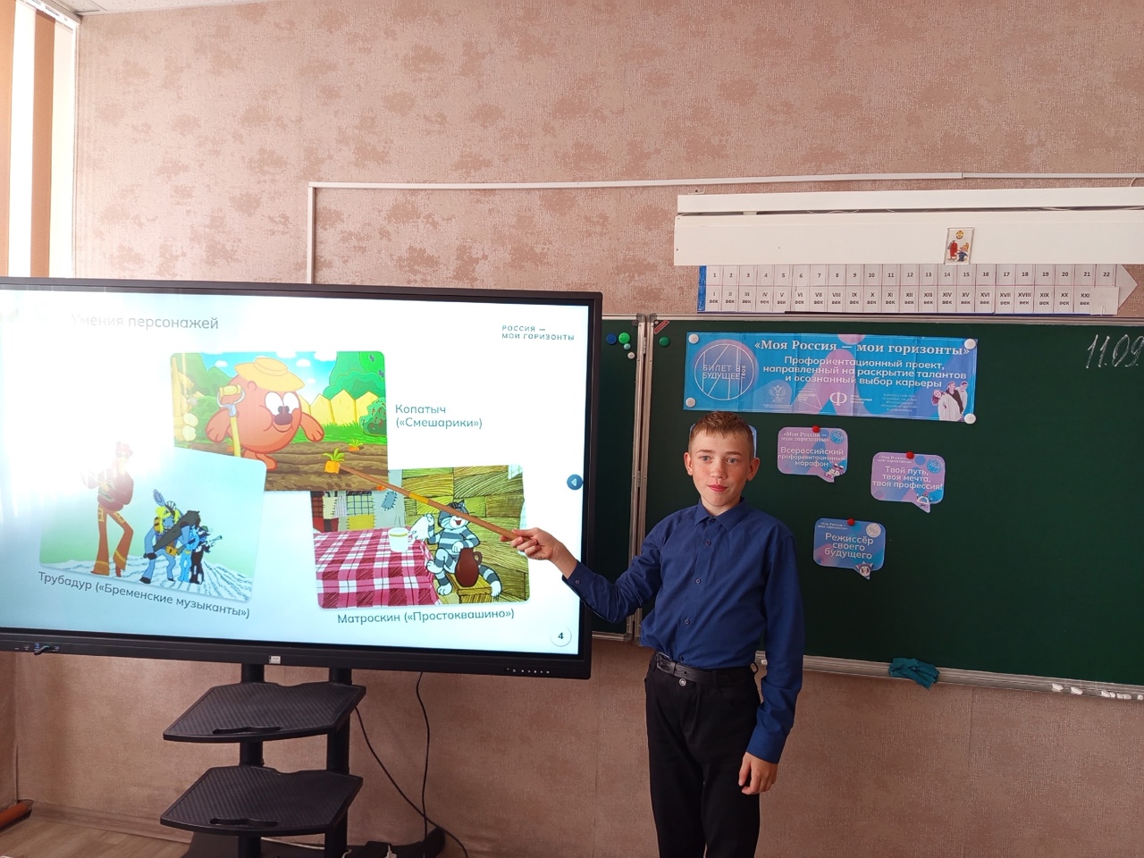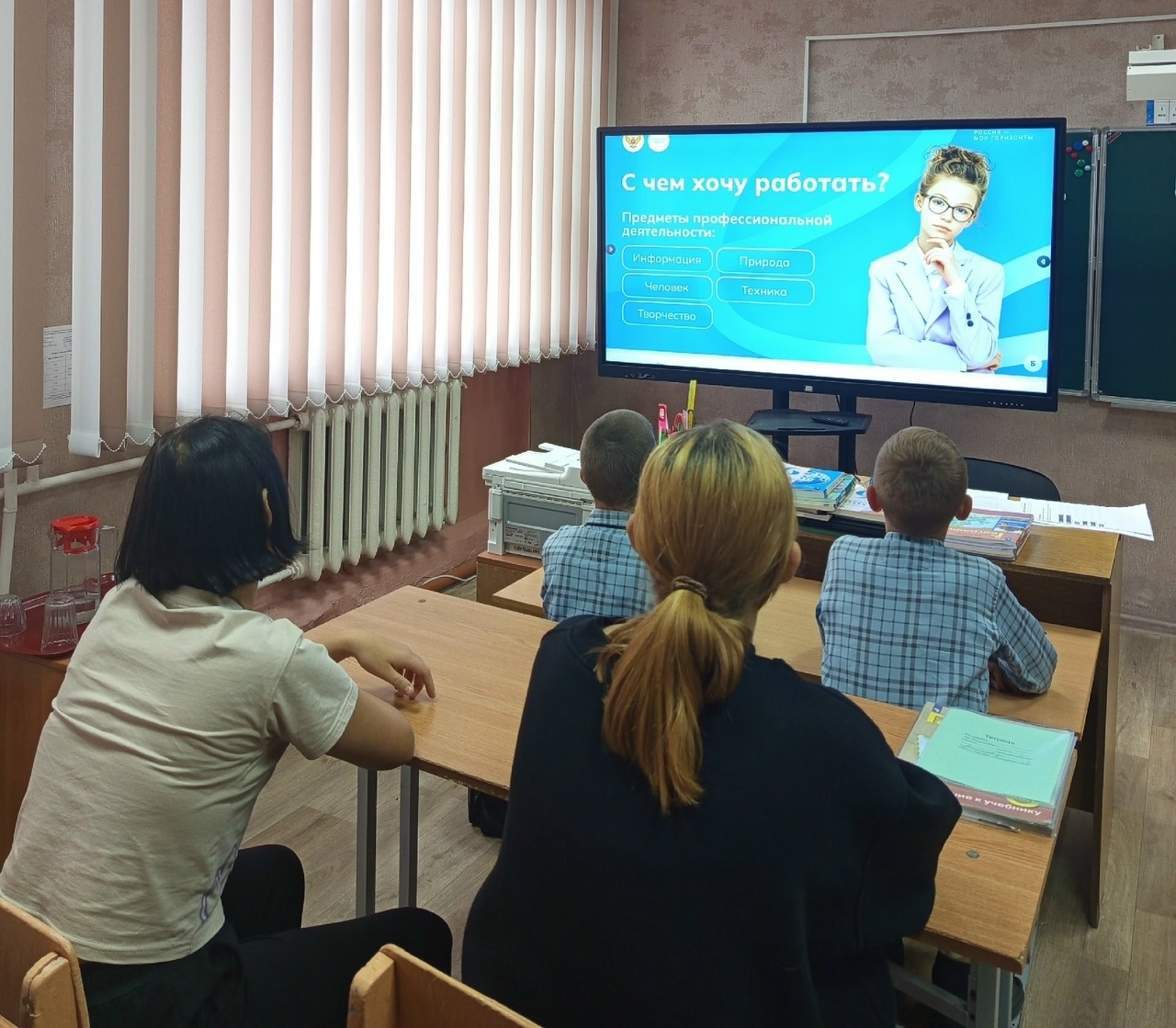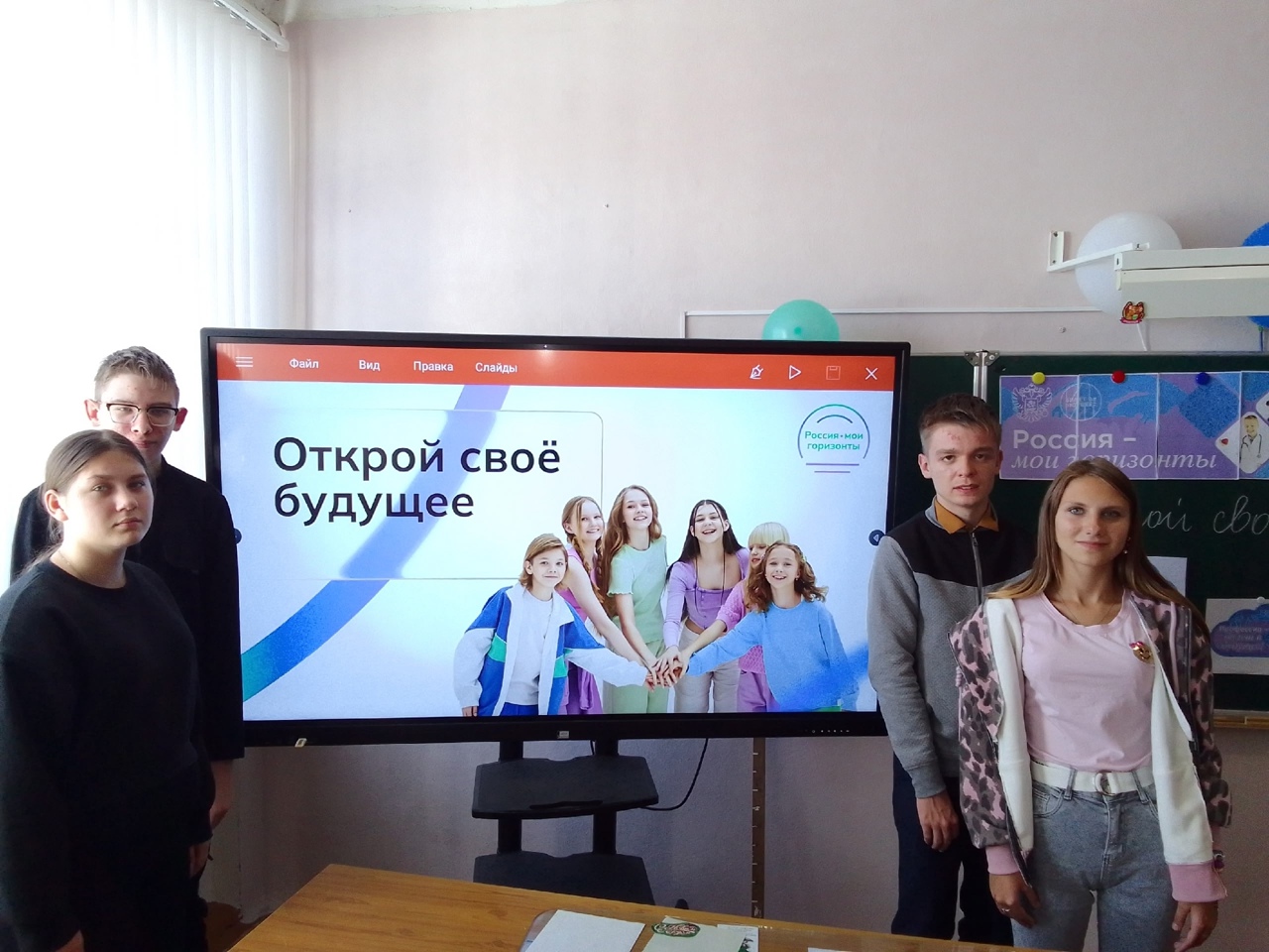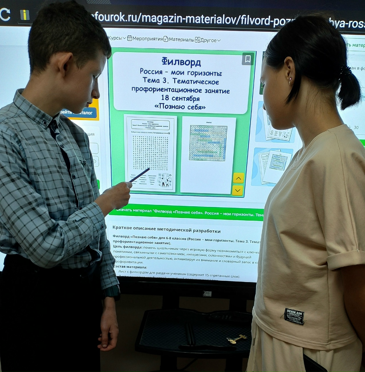 11 сентября в Дмитровской школе-интернате для учеников 6–9 классов прошло внеурочное занятие «Россия — мои горизонты» на тему «Открой своё будущее». Ребята обсудили значимость школьного образования, важность знаний для будущей профессиональной жизни и выбора карьеры. Они посмотрели видеоролики о таких профессиях, как агроном, строитель и озеленитель, а затем попробовали себя в этих ролях, посетив виртуальный город профессий — Профиград.