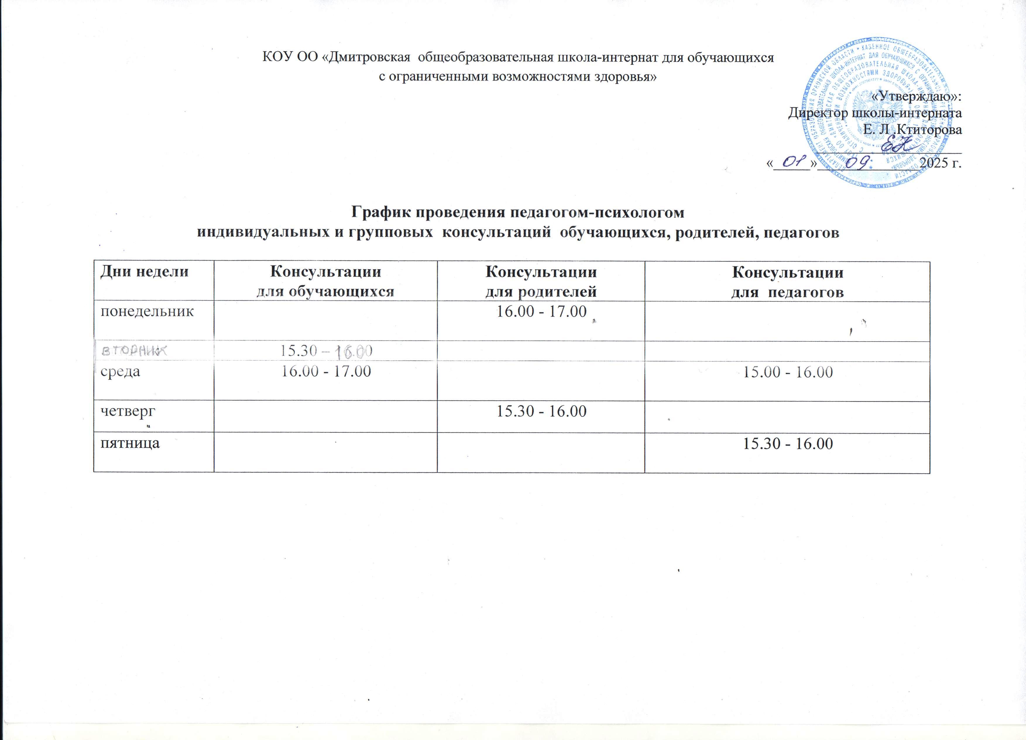Цели, задачи, основные направления работы педагога психолога школы –интерната